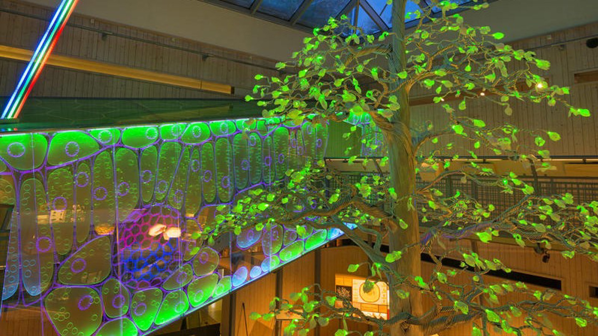 For å vise hvor spektakulær fotosyntesen er har Plexon produsert en 9 meter lang lysende akrylvegg som viser snittet av et blad. Midt i utstillingen står en 7,5 meter høy treskulptur laget av 10 km aluminiumsrør