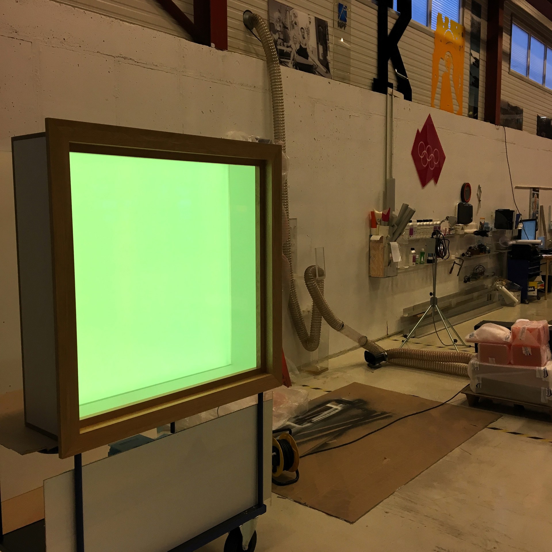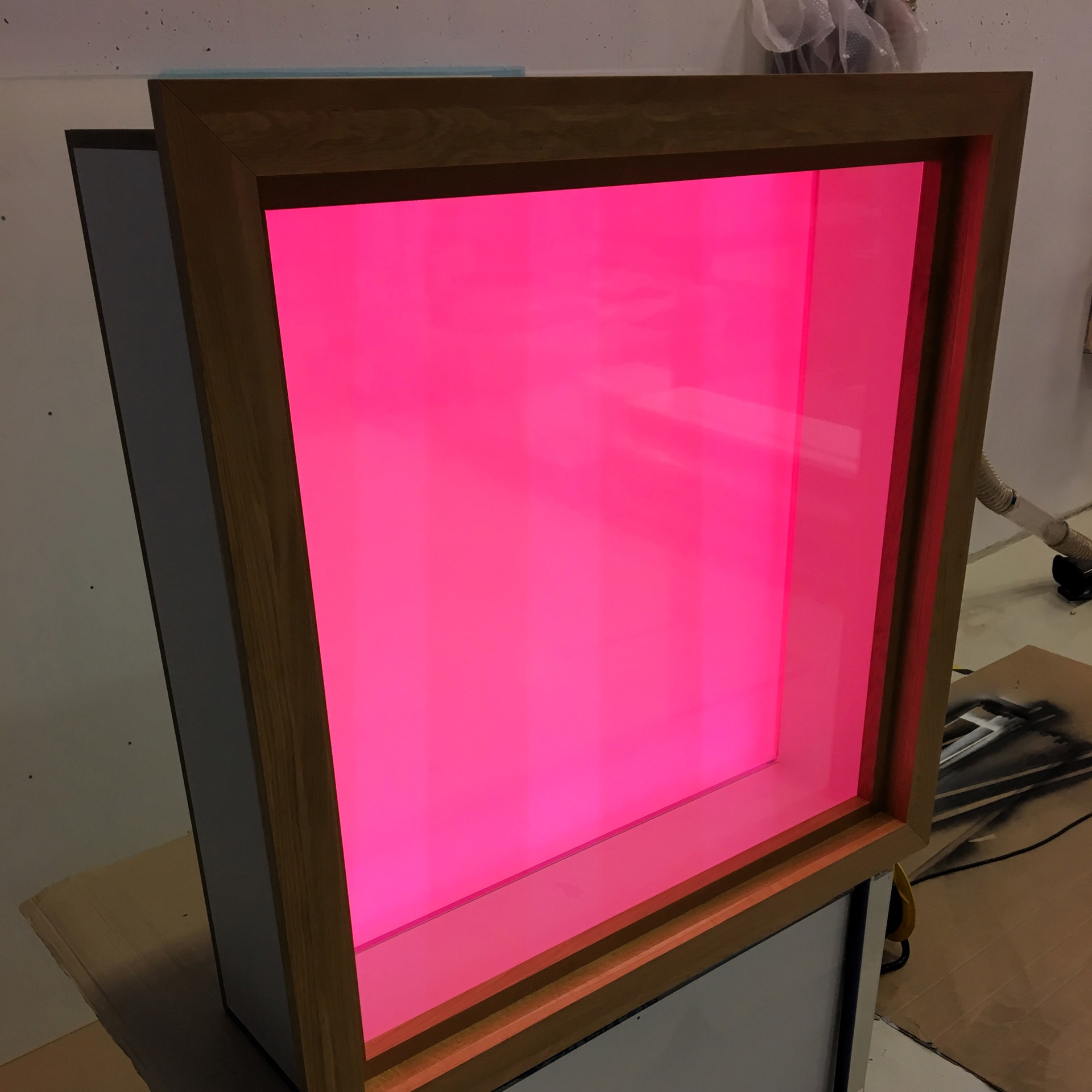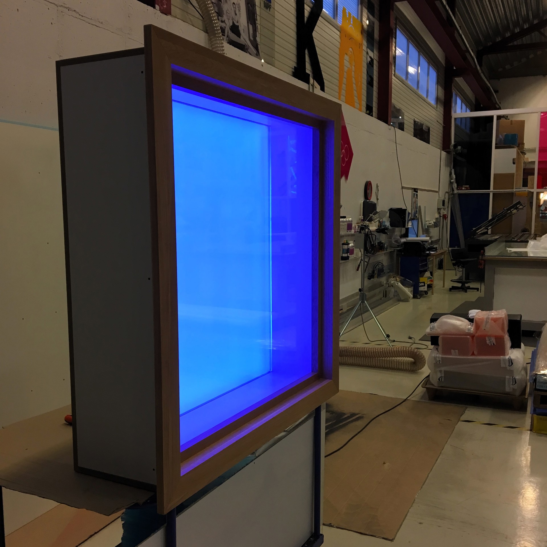 Produktene er laget av eikeramme med glassfront. Inne i de falske vinduene er det belyst Endlighten plexiglass, som skaper en livlig atmosfære med dybde.