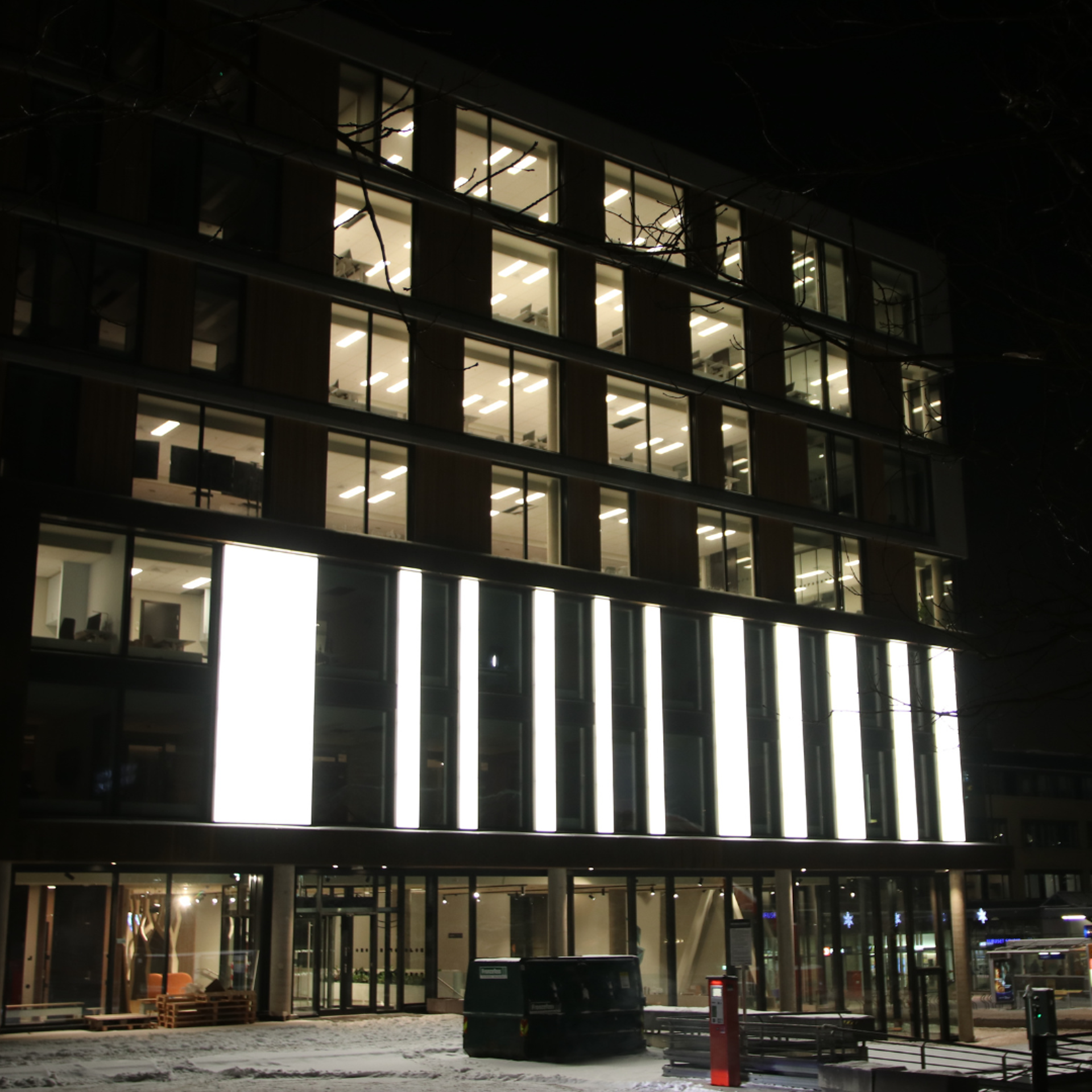 Lysfasader profilerer bygget og skaper trygghet i offentlige rom