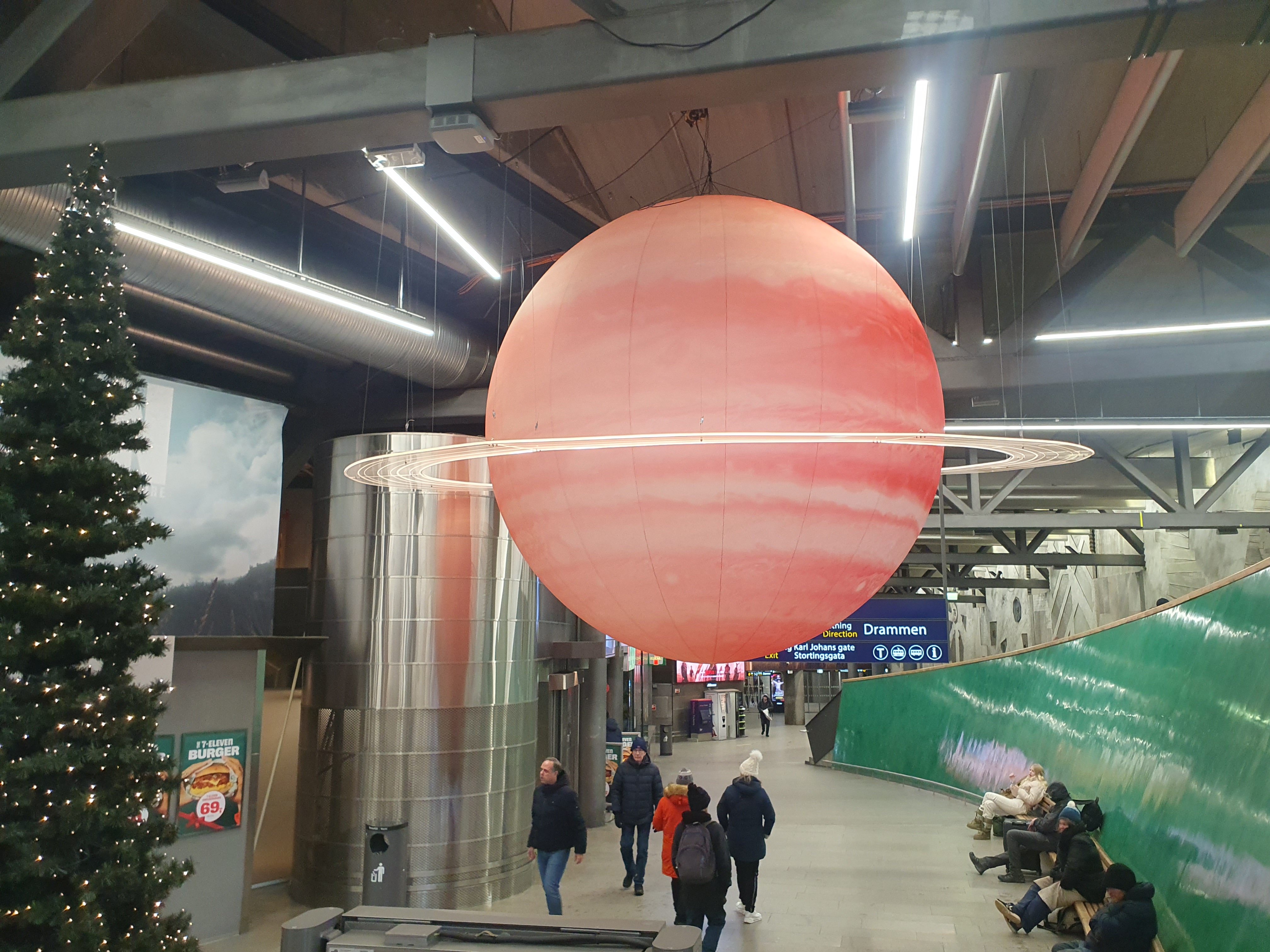 Hvordan skape en illusjon av at en planet med planetariske ringer har funnet veien inn på Nasjonalteateret stasjon?