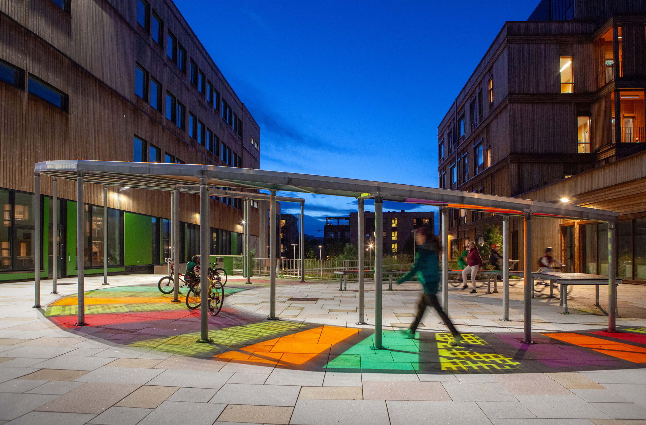 Installasjonene skaper ikke bare energi fra solen, men også energi i form av farger, lys og form som stimulerer sansene og oppmuntrer til sosialt samvær. Dette prosjektet reflekterer Bærum kommunes satsing på fremtidsrettede, bærekraftige løsninger.'