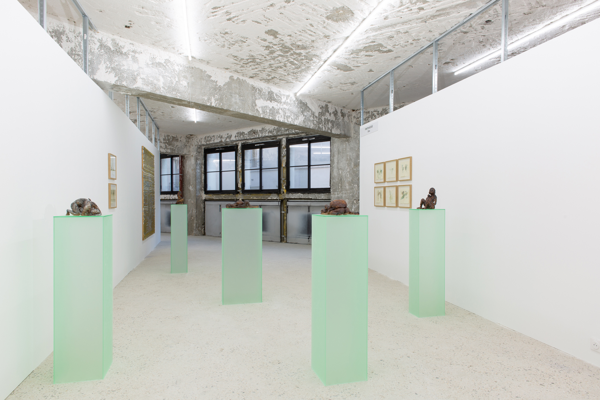 Utstilling fra Galleri Femtensesse på Paris Internationale. Glassert steingods av kunstner Jennie Bringaker, elegant presentert på søyler i plexiglass.